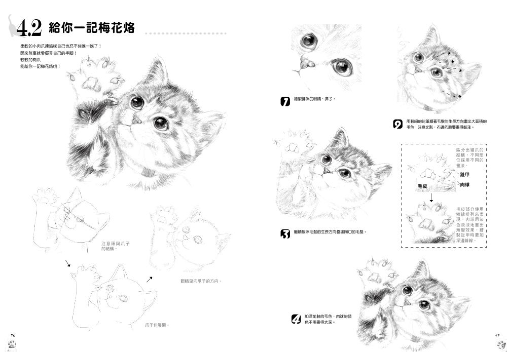 ◎ 近800張步驟拆解圖,從打草稿、上色、加陰影手把手教學,畫出最完整的貓咪樂園!