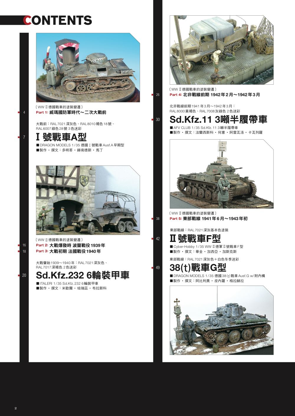 全書以廣受模友喜愛的二次大戰德國戰車模型為主題,按照時期順序介紹各種不同的制式塗裝規範,並搭配作例呈現出二戰德軍戰甲車塗裝多樣性。在製作過程與塗裝技法方面,皆以深入淺出的方式詳細解說,搭配大量圖片與插圖,絕對讓您心動手癢,躍躍欲試!
