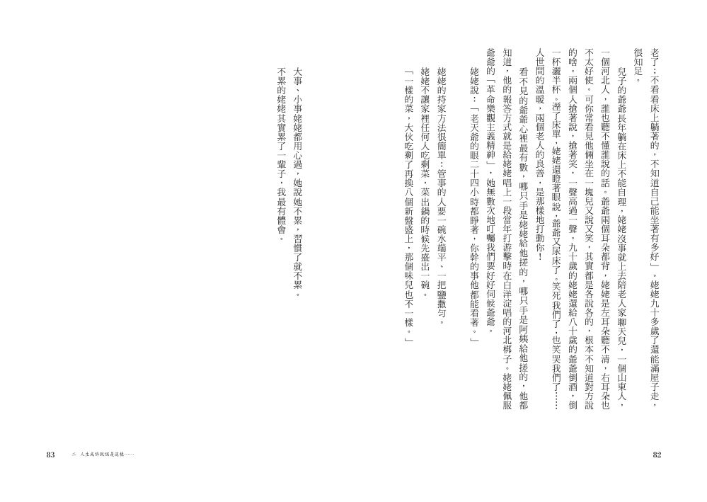 「看完後,噙著眼淚,頭埋在書裏,怕別人發現,很沒出息,但很溫暖,很感動!一個可愛質樸的農村老奶奶,心裡卻裝著全天下最真最真的生活智慧!」—偽文藝青年
