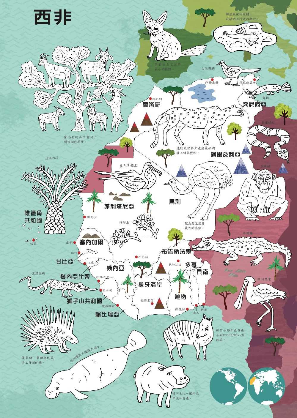 ◎ 1張世界地圖+20個區域性地圖+各國國旗,全世界最有生態教育性的著色書!