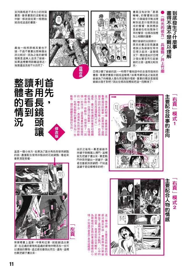 「這你就不知道了,當然要特別提出來!讀者寄來的這些作品裡面,有太多都是只靠對話框裡的對話或是敘述、獨白來推動故事發展。我舉個極端點的例子,有一幕描寫主角終於到了東京,就只在主角的特寫畫面上加個旁白『終於來到東京了』,像這種畫法可多了。」
