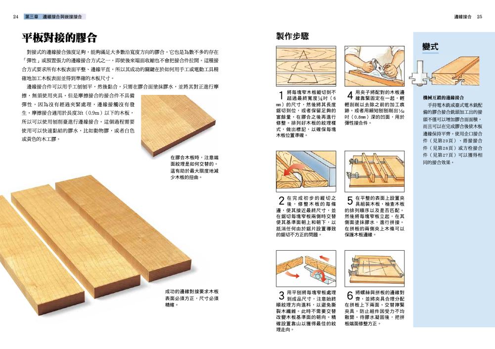 書中以清晰的步驟圖片和文字說明詳解各種接合方式的執行細節: