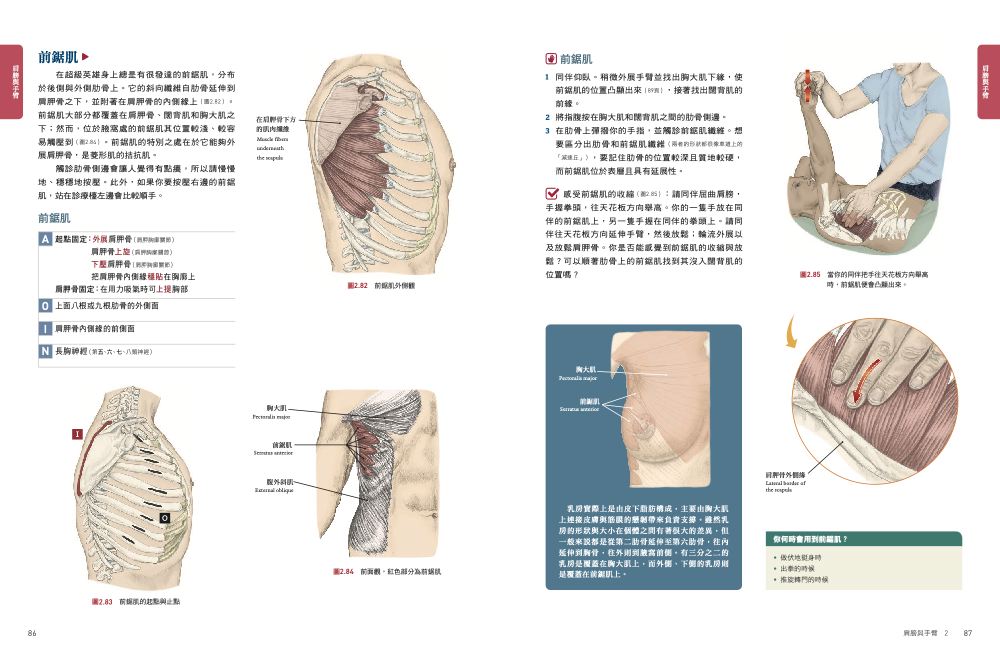 ◎記得還在醫學院就讀時,表面解剖這門課教導我靠雙手沿著身體找出可摸到的肌群、韌帶與骨凸點,協助個案的評估。學習解剖的過程中,最重要的便是搭配著圖片參考才會印象深刻,這本書不但解剖內容非常詳細,同時還搭配大量彩圖供讀者參考,非常推薦給正在讀醫學院的學生或是教練、皮拉提斯老師等從事動作相關產業的專業人士。—— Hunter 物理治療師/Hunter
