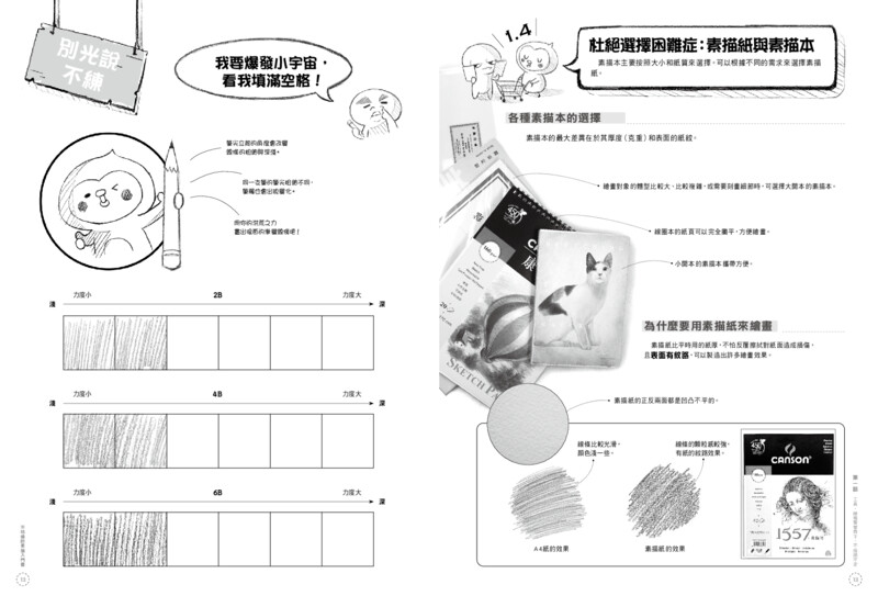 從基礎工具入門,到觀察起型、結構透視、光影明暗,再到質感表現與人物速塗,
